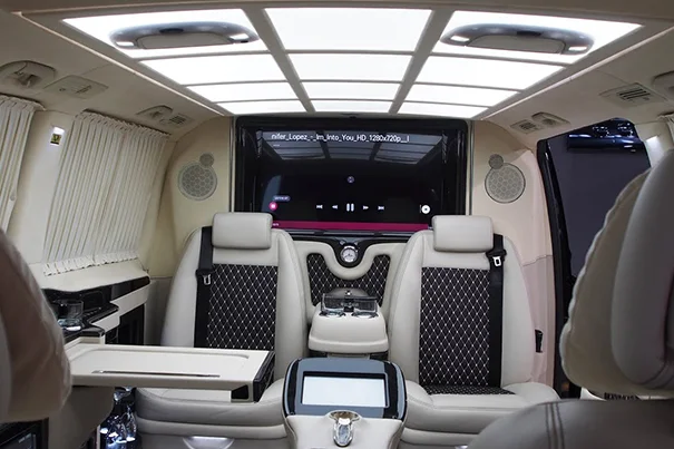 Inside, the layout is simple and helpful. The lighting is soft, the touch controls are easy to reach, and the overall setting feels relaxed for both short and long rides. The van stays steady on highways, handles turns gently, and keeps outside noise low. Travelers can talk, rest, read, or work without interruption.